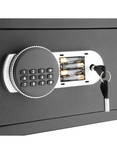 Le coffre dispose d'un avertissement de batterie faible et est livré avec deux clés de dérogation pour un accès d'urgence.